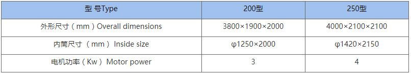二、氯洗機主要技術參數(Main Technical specifications)